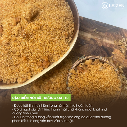 - Đường cát lu/đường hoa mơ La'zen là đường kết tinh hoàn toàn TỰ NHIÊN, không phải được nấu từ đường tinh luyện, còn gọi là đường phèn non do thu đường sớm khi tinh thể mới kết tinh hạt còn nhỏ. Đường cát lu dễ tan, phù hợp sử dụng trong pha chế mà không cần phải đun nóng chảy như đường phèn tinh thể lớn.