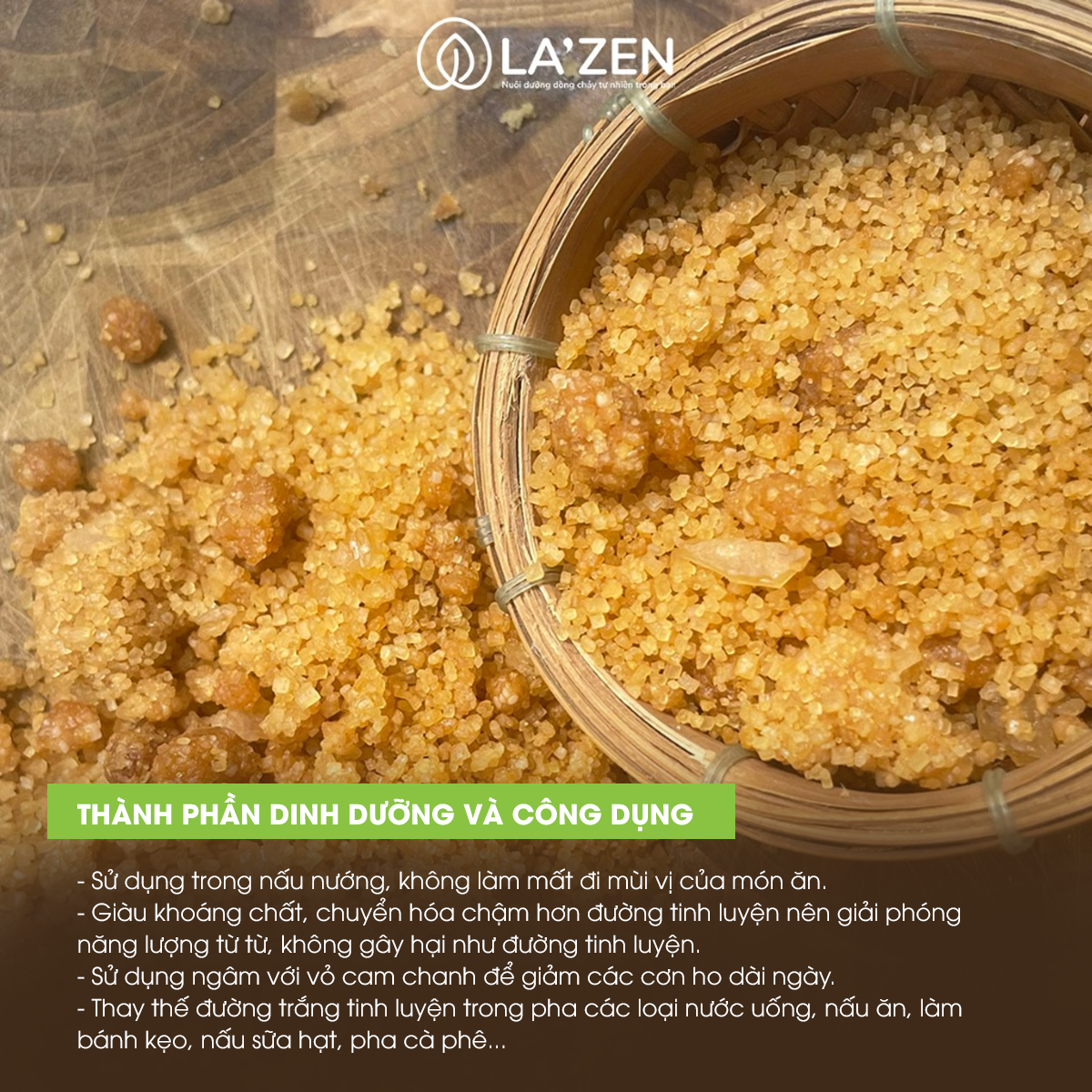 - Giàu khoáng chất, chuyển hóa chậm hơn đường tinh luyện nên giải phóng năng lượng từ từ, không gây hại như đường tinh luyện.