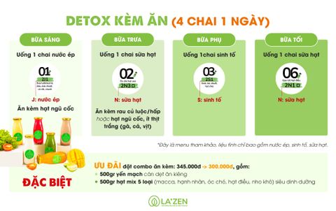 La'zen cung cấp cho mình 5-6 chai sinh tố, nước ép, sữa hạt tươi thay cho các bữa ăn trong 3-5-7 ngày, giúp