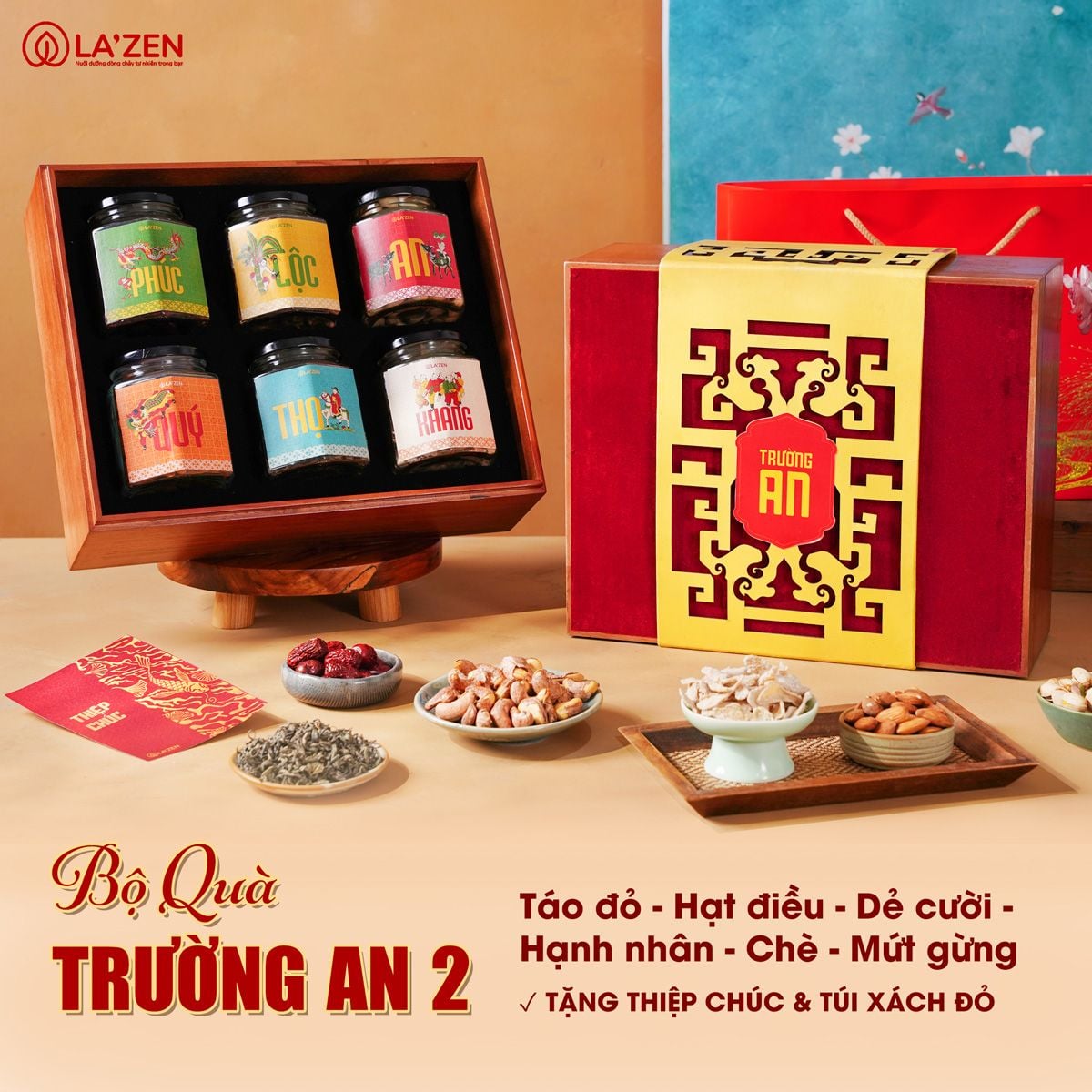 Vào những dịp lễ đặc biệt, chắc hẳn ai cũng tìm kiếm một món quà thật đẹp mắt và ý nghĩa để trao tặng cho những người thân thương để bày tỏ sự yêu thương. Hiểu được điều đó, La'zen mang đến bạn chọn lựa hộp quà tặng vô cùng ý nghĩa để gửi tặng người thương mang tên "Bộ quà TRƯỜNG AN"