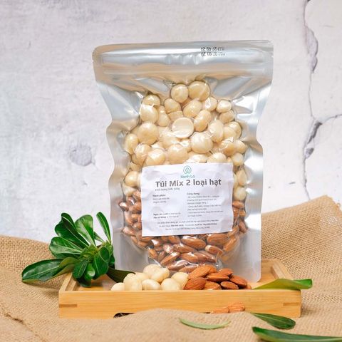 Túi mix 2 loại hạt là sự kết hợp dinh dưỡng của cả macca và hạnh nhân mang đến nguồn dinh dưỡng đa dạng hoàn hảo, đồng thời giúp Quý khách thay đổi khẩu vị không thấy ngán.