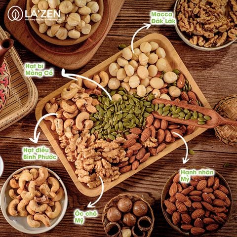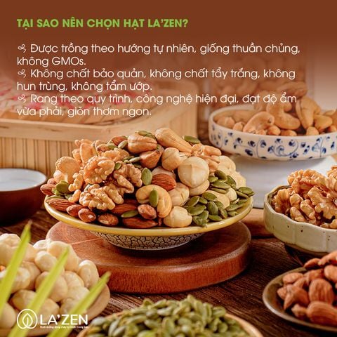 Hạt là loại thực phẩm giàu dinh dưỡng, được sử dụng phổ biến trong các chế độ ăn, từ ăn kiêng, keto đến ăn chay đến thực đơn cung cấp dưỡng chất có lợi cho mẹ bầu và trẻ nhỏ. Việc lựa chọn từng loại hạt khiến nhiều chị em phụ nữ phải đau đầu trong việc chọn lựa. Hơn nữa, đóng gói của từng loại hạt cũng quá nhiều khiến việc không sử dụng không hết có thể gây nấm mốc. Chính vì lý do ấy, La'zen mang đến cho khách hàng sản phẩm hạt mix dinh dưỡng tổng hợp 5 loại hạt đó là Macca, óc chó, hạt nhân, hạt điều và dẻ cười.